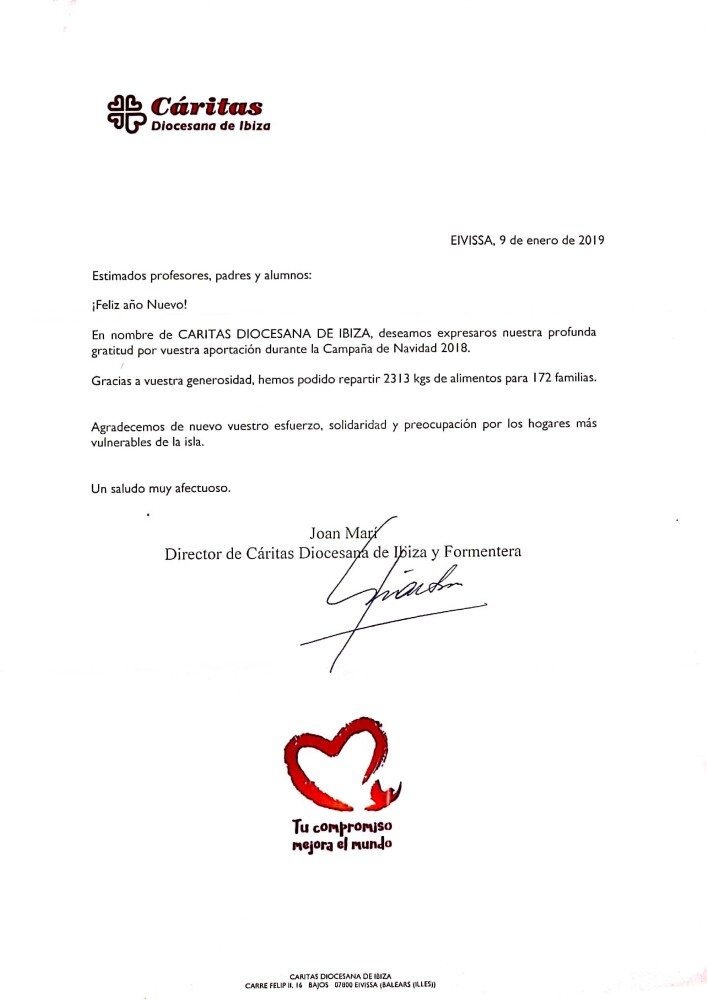 Agradecimiento de Cáritas
